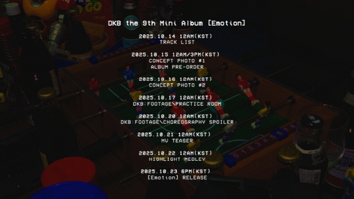 所属事務所Brave Entertainmentは10月13日(月)午前0時、DKBの公式YouTubeチャンネルおよびSNSを通じて9thミニアルバム『Emotion』のタイトルおよびスケジューラー映像『DKB:FOOTAGE\Emotion\COMEBACK』を公開。ファンの期待を一気に高めた。