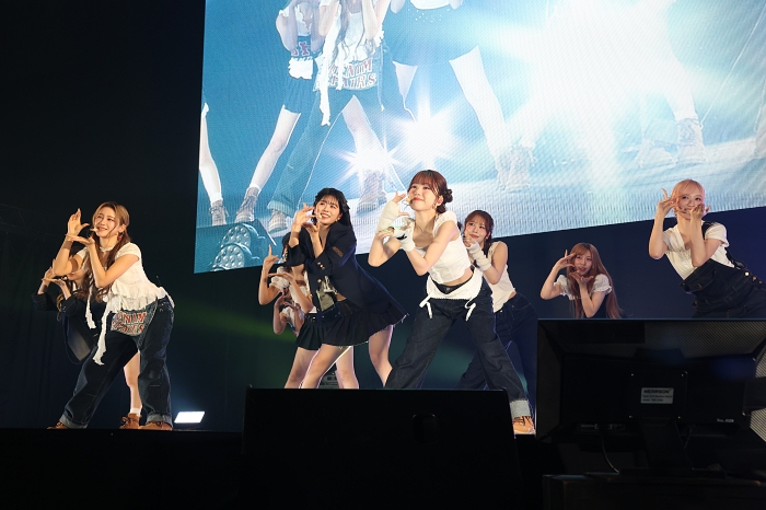 『TGC北九州』の舞台にメインアーティストとして登場したME:Iは、白とデニムを基調とした爽やかな衣装にお揃いのシューズで登場。ME:Iを待ちわびていたかのような歓声に迎えられ、デビュー曲「Click」でステージの幕を開けるとキレのあるダンスブレイクやTSUZUMIの突き抜けるようなロングトーンで会場を一気に引き込んでいきます。