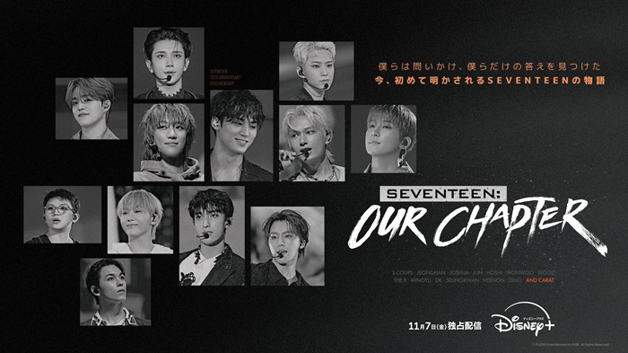 - SEVENTEEN 素顔に迫るドキュメンタリー、未来への決意とCARATへの想いを語る 本ポスター&本予告解禁!『SEVENTEEN: OUR CHAPTER』ディズニープラス で11月7日(金)より独占配信決定!