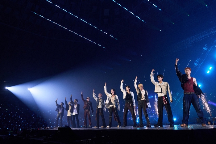 そんなTREASUREが、2025年10月10日・11日・12日にソウル・オリンピック公園KSPO DOMEで『2025-26 TREASURE TOUR [PULSE ON] IN SEOUL』を開催。会場は連日大歓声に包まれ、ヒット曲「MMM」「KING KONG」「BONA BONA」「BOY」「JIKJIN」や3rd MINI ALBUM『LOVE PULSE』収録の新曲、感性豊かなバラード、爽快なダンス曲、さらに各種ユニットステージまで立て続けに披露。バンドサウンドとライブダンサー、そして最新LEDや特殊効果(火柱・火薬)による圧巻のライブ演出で、会場にいるファンを魅了した。