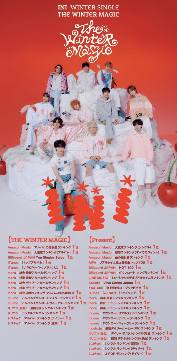 - INI 最新シングル『THE WINTER MAGIC』 1週間で121万枚を売り上げ、 国内今年度最高&自己最高記録を更新中!楽曲ダウンロードやラジオなど各種音楽チャートでも1位を席巻