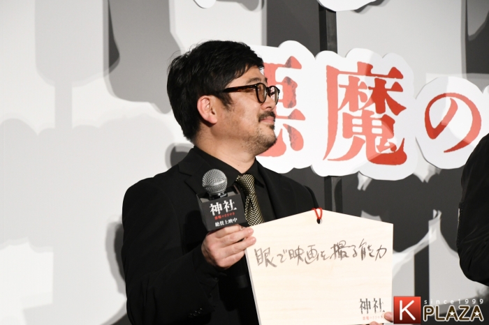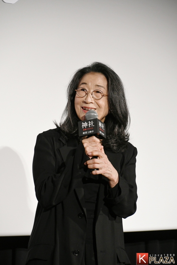 JAEJOONG(ジェジュン)主演×熊切和嘉監督の新作ホラー『神社 悪魔のささやき』が、2月6日(金)に全国公開となった。(配給:クロックワークス)2月11日(水・祝)新宿バルト9にて、祈祷師(ムーダン)のミョンジン役を演じた主演のJAEJOONG(ジェジュン)、大家の佐藤役を演じた木野花、メガホンをとった熊切和嘉監督が舞台挨拶に登壇し、撮影エピソードなどを語った。