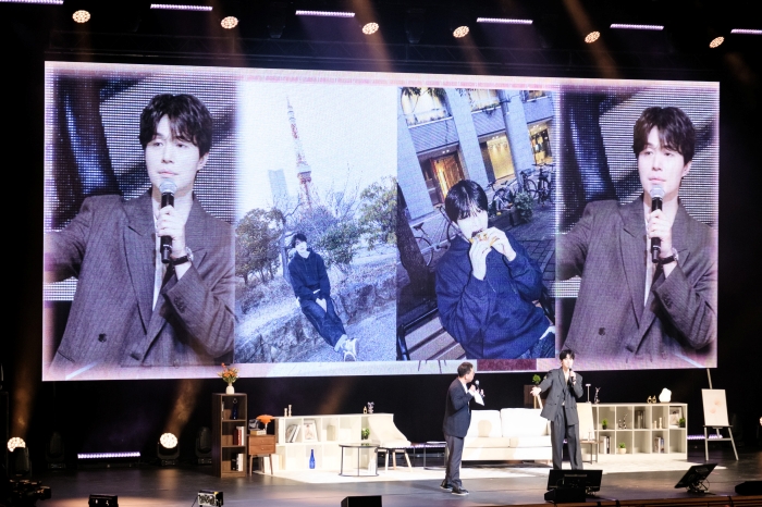 続けて「あまり悔いを残すと前に進めなくなってしまう」とし、「できれば早く忘れて、また次の作品で頑張ろうって気持ちで臨んでいます」と演技に向き合う姿勢を語り、会場を盛り上げました。素顔が垣間見えるエピソードが語られるたびに、観客から共感の拍手や笑い声が起こり、イ・ドンウクとファンとの距離が一層近づく時間となりました。