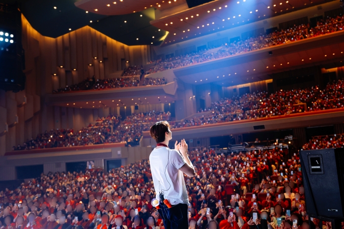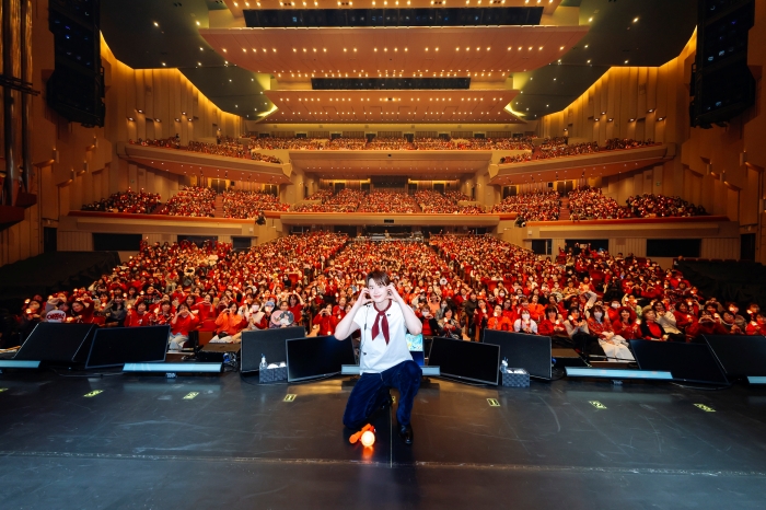 日本でも昨年9月に東京と大阪で開催されていたファンミーティングのアンコール公演となった今回。序盤では昨年のイベント内容も振り返りつつ、昨年のイベント後に本人の希望によりアンコール公演が開催されることになったというビハインドストーリーが明かされた。また今回のツアーから導入された公式ペンライトについても触れ、ペンライトの無線コントロールによって生まれた会場全体の一体感や、客席に広がる美しいペンライトの海に感動した様子も見せた。