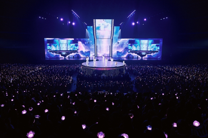 「ここから雰囲気を変えていきましょう!」(ZHANG HAO)という呼びかけに続いて、青と白のローズが咲き乱れる映像を背景に歌ったのは「MELTING POINT」。続く「In Bloom(Japanese ver.)」では円形のセンターステージがゆっくりと上昇し、メンバーがペンライトの花畑を見下ろしながら声を響かせる。