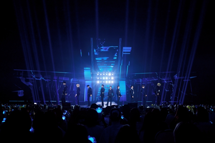 この日は3名ずつに分かれてのユニットステージも用意され、トップバッターはKIM JI WOONG、ZHANG HAO、KIM GYU VIN。後方扉から客席を通って登場するサプライズで会場を沸かせ、疾走感のある「Out of Love」を爽やかに歌い上げた。続くRICKY、PARK GUN WOOK、HAN YU JINはダンス・ポップナンバー「Step Back」を披露。洗練されたパフォーマンスで都会的な魅力を発揮した。さらにSUNG HAN BIN、SEOK MATTHEW、KIM TAE RAEはポップアップからジャンプして登場し、ロックナンバー「Cruel」を熱唱。力強いボーカルとエネルギッシュなステージで観客を引き込んだ。