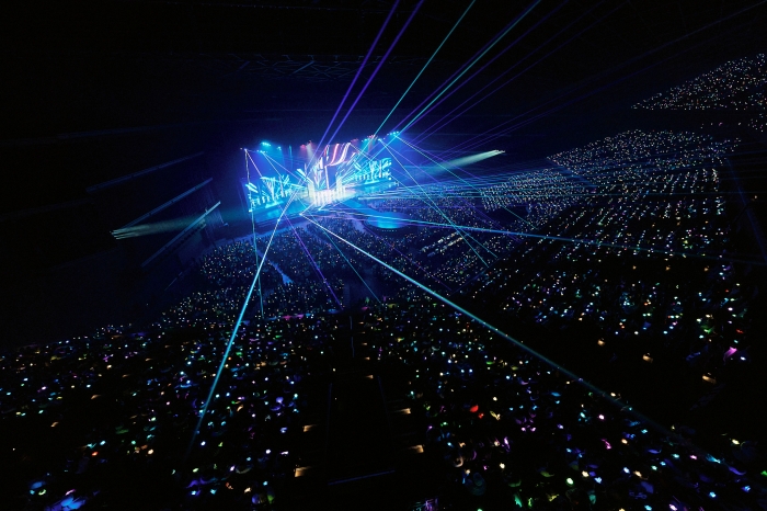 全員の挨拶を終えると、この日最後のVCRが流れ、いよいよラストナンバーへ。 「時間を超えて、約束してあの場所で、また会おう」というメッセージに続いて届けられたのは、『RE-FLOW』収録の最新曲「Running to Future」。この曲ではメンバーたっての希望により、ファンが点灯させたスマートフォンのライトが会場を照らした。