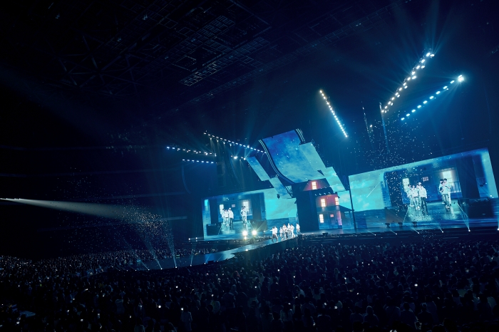 そして届けられたのは『BOYS PLANET』ファイナルで披露された「Not Alone」。ZHANG HAOとSUNG HAN BINが肩を組み、声を重ねる場面は当時の記憶を呼び起こす瞬間となった。曲の後半はメインステージへと移動し、メンバーが屋根の上に座っているかのような演出に。「いつも今のように、君と一緒に笑っていたい」「夜空をいっぱいに照らすStarlight 互いを輝かせる君と僕」と、語りかけるような歌声が会場を包み込む。