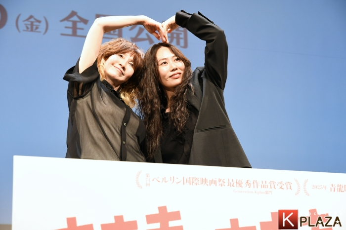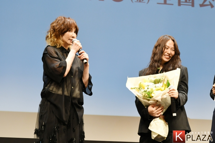 ここで、キム・ヘヨン監督の来日を一緒にお祝いしたいということで、ゲストにタレントのYOUが花束を持って登場。YOUから花束を手渡された監督は大喜び。監督は、一番好きな映画で、尊敬しているという是枝監督の『あの誰も知らない』に出演したYOUが大好きで、イベント前にも偶然廊下で会って盛り上がったという。YOUが今日、来てくれると知ったときは「夢のよう」と興奮したという監督。YOUは「是枝監督に後で伝えますね」と約束した。