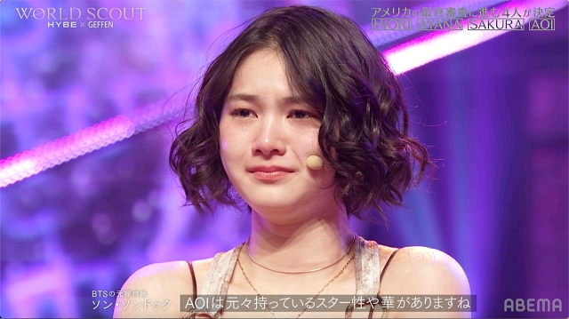 最後に、Cチームからはダンス・歌未経験のAOIが合格。審査員のソン・ソンドゥクはAOIについても「スター性を持った参加者だと思う、才能が舞台で輝いていた」と評価。AOIは「正直に言うと、このメンバーの中で私が一番足を引っ張っていたんですよ。みんなに感謝を伝えたい」と涙ながらにコメントしました。