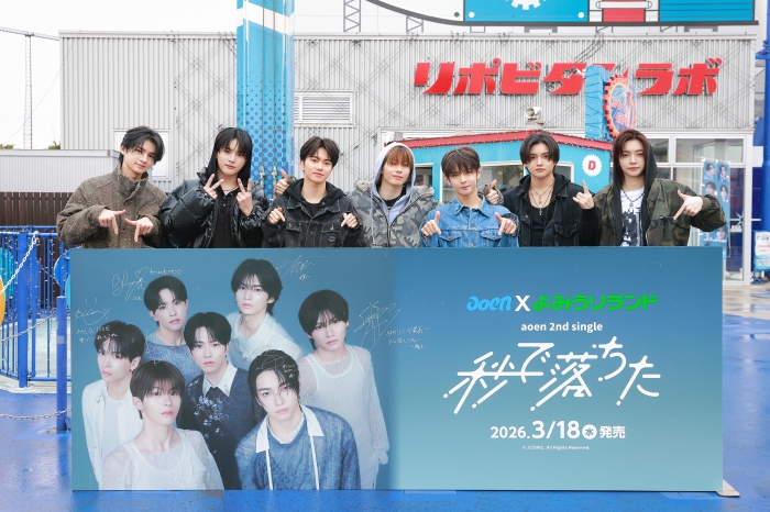 JCONICが手掛ける新世代J-POPボーイズグループaoen(読み:アオエン)が、遊園地「よみうりランド」に訪れ、aoen 2nd Single「秒で落ちた」の発売を記念して2026年4月5日(日)まで開催されている期間限定企画「aoen×よみうりランド」を堪能した際のオフショットを公開した。